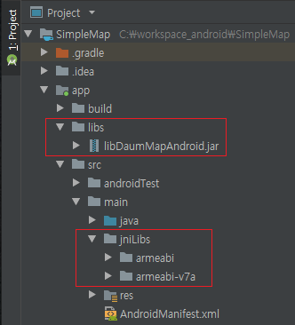 1) 다운로드 받은 SDK 의 압축을 풀고 libs 디렉토리를 Project의 app 디렉토리에 복사한다.