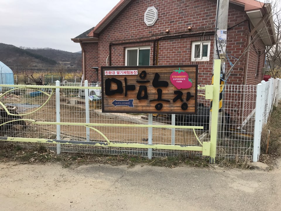 아쉬움을 딸기따기로 달래기로 하고 비닐하우스가 있는 곳으로 이동.