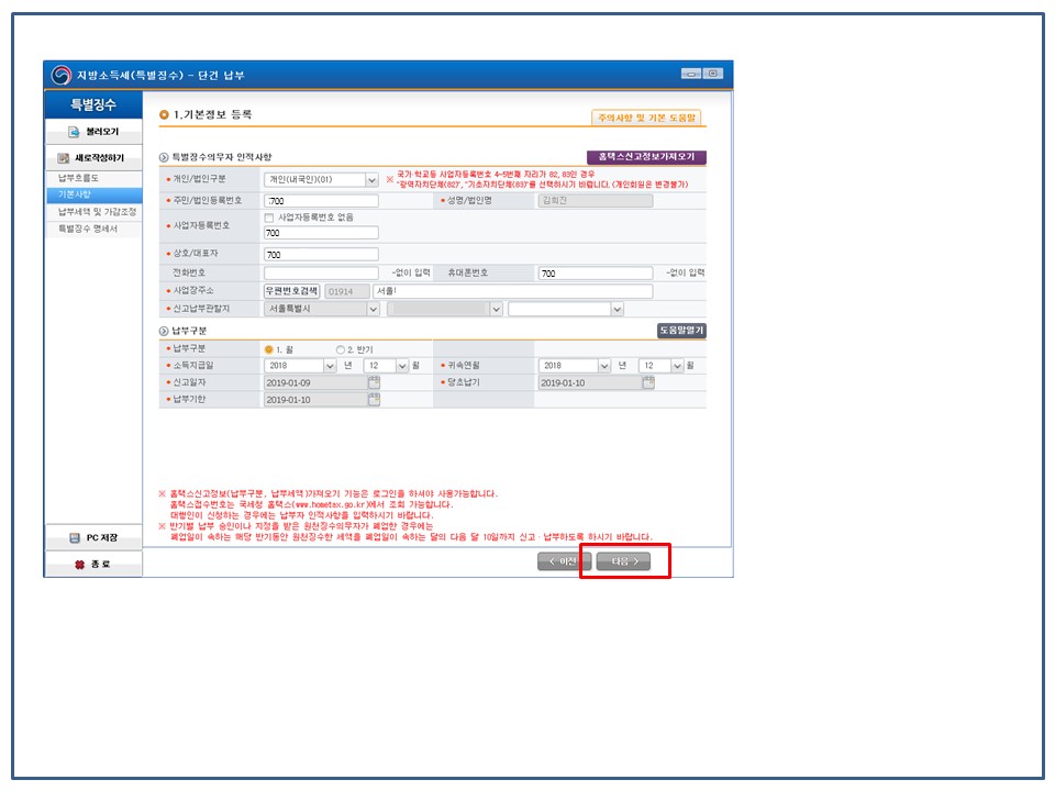 화면에서 붉은색 박스가 쳐져있거나, 붉은색으로 표시된 부분이 클릭 또는 작성해야 하는 부분입니다.