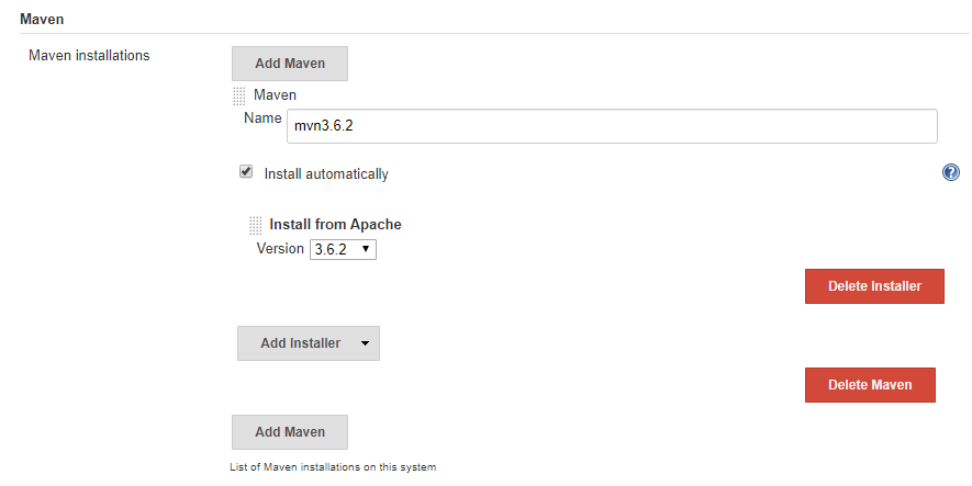 Jenkins > Global Tool Configuration 메뉴로 이동한 후에 'Maven' 항목에서 메이븐을 추가해 주면 됩니다.