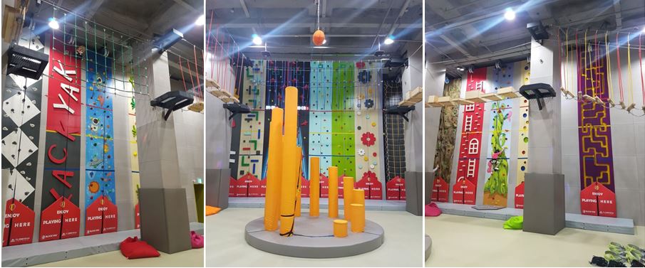 3벽면 모두 암벽등반 체험이데 다양한 형태로 되어 있을 뿐 아니라, 알록달록 예쁘게 꾸며져 있어서 아이가 더 흥미를 가지고 올라갔던 것 같다. 하나씩 도전해가면 미션을 완수하는 느낌이 들었는지 하면서도 즐거워하는게 느껴졌다.