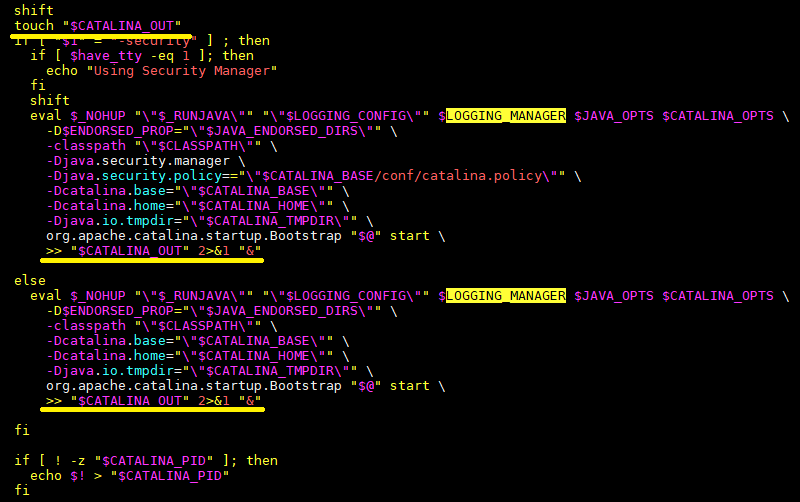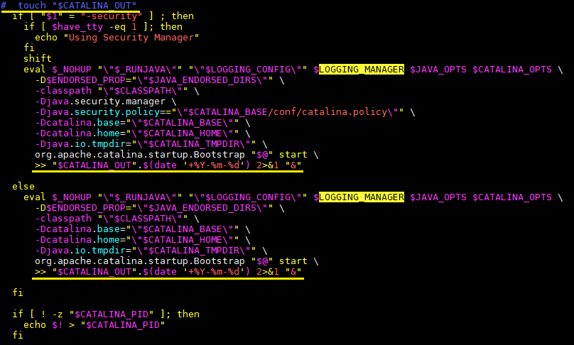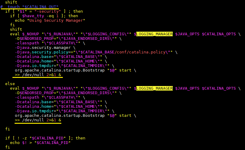 touch "$CATALINA_OUT" --> #touch "$CATALINA_OUT"