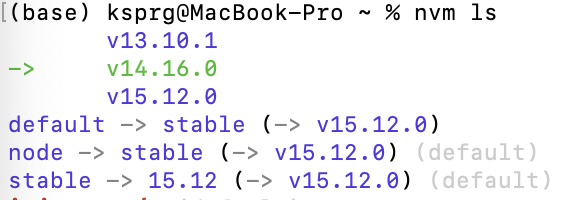 원하는 버전으로 변경(터미널을 닫고 다시 열면 디폴트 값으로 변경된다)